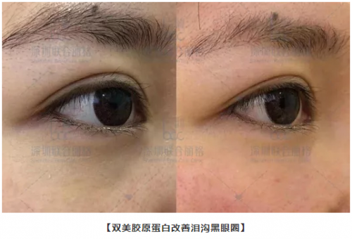 4)填充后,可促进自身胶原再生,让注射区域皮肤更为紧致,有效改善眼周细纹,因此,双美胶原蛋白成为填充泪沟的首选产品。