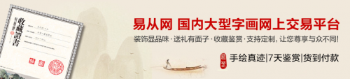 ▲易从网,愿以质量与信誉广结翰墨缘,做到服务大众,藏画与民,成为艺术家的发展园地,收藏家的良朋益友,企业家的投资渠道,广大群众的书画艺术顾问。另外,为最大限度地保障每一位消费者的利益,易从网还有七天鉴赏期,七天可以无理由退换货。支持全国范围货到付款,欢迎登录易从网商城鉴赏。