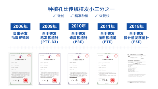 一直以来,技术应用与创新都是大麦微针植发品牌发展的核心动力。2006年,大麦微针植发率先引进微针植发技术,经过14年的不断创新、优化,先后5次技术升级均获得国家技术专利。