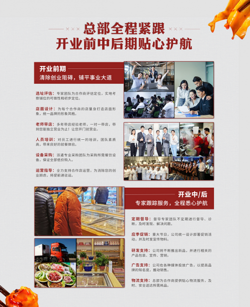 总部会提供整店输出、品牌资源、产品研发、精细托管、后期服务、物流配送、品牌宣传、商圈保护、装修设计、选址调研等10大运营支持,让合作商开店更加省心、省事。