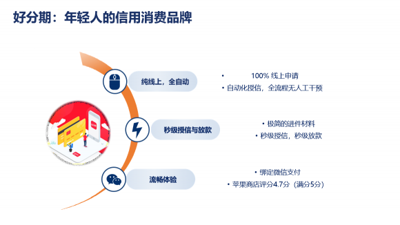 而处于互联网消费金融领域的好分期,也将会不断突破创新,在行业的带领下服务更多消费者。好分期是北京微财科技有限公司旗下运营的一款分期购物平台,针对年轻互联网消费人群搭建的线上分期购物、现金借款等一体化的金融服务,致力于为互联网用户的输出资金解决方案。好分期深耕消费者心理,洞察他们的消费升级需求,致力科技创新、拓宽商品种类,让消费者能够享受到更安心的便捷服务。