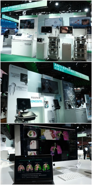 作为新冠病毒感染检测的重要手段,富士胶片旗下PCR检测法专用基因检测试剂盒更首次亮相大型展会,最短可将检查时间缩至约2小时;而在中国市场广受好评的富士胶片旗下电子支气管镜、医学影像三维后处理系统SYNAPSE 3D、生化分析仪NX系列、索诺声便携式超声等产品也都在防疫一线的临床诊断中扮演着重要角色。