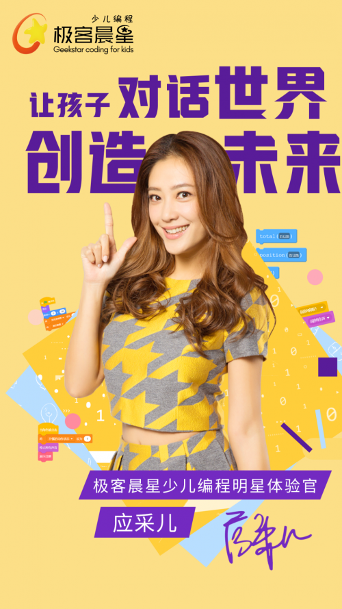 近日,极客晨星官方正式宣布了应采儿成为极客晨星少儿编程明星体验官。