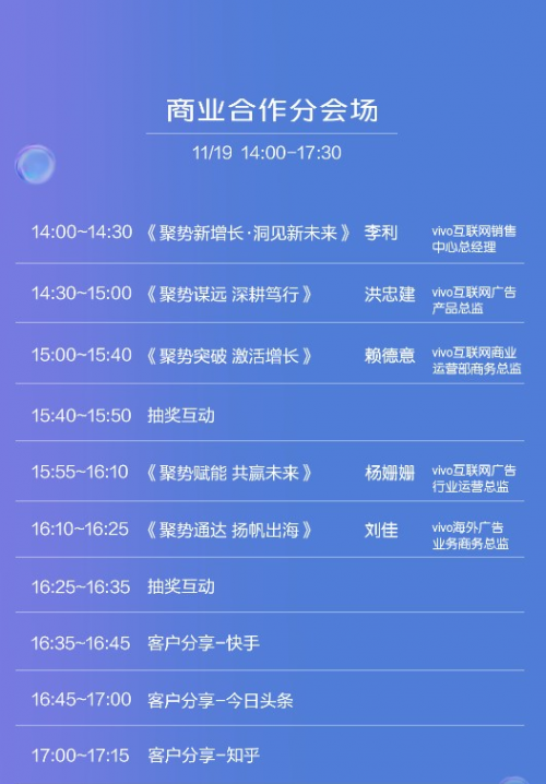 凭借着全面的产品线覆盖,vivo构建了一个规模庞大的移动虚拟世界,并在其中担任着重要的角色。通过2.6亿国内用户体量、优质流量用户价值以及丰富的流量分发场景,配合DMP等技术布局,vivo将在移动营销领域为客户带来全链路的营销生命周期管理,运用不同的策略来驱动用户增长。想要了解vivo商业合作方面的相关内容?商业化分会场的精彩活动一定不要错过。