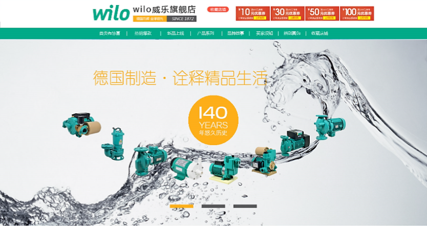 威乐(WILO)此次在天猫旗舰店主推家用型水泵,在行业内领先进行电商网络销售的产品涵盖九大类,24个子类别,涉及家用型全系列明星单品和核心技术产品。同时,最新产品,新闻等也将会第一时间在天猫旗舰店发布,上线之后有望通过中国最大的电商平台与线上消费者进行深度沟通,让中国消费者体会到德国核心技术给生活带来的舒适与便捷。