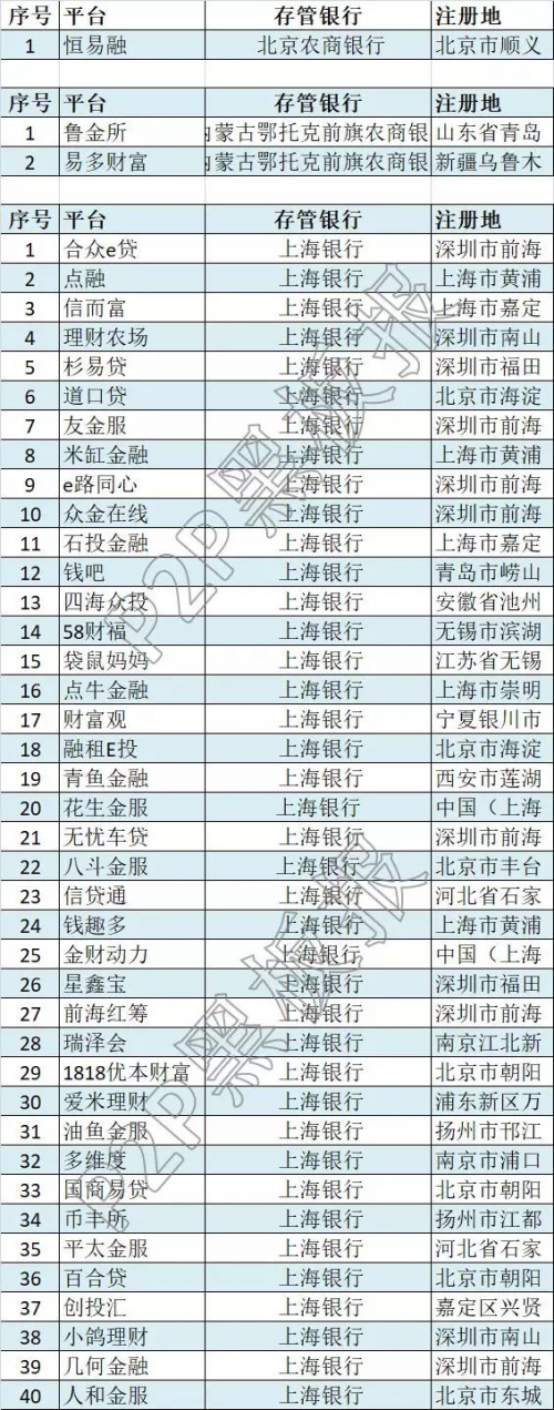 据P2P黑板报掌握的数据,在670余家银行存管平台通过这三家银行存管的平台约40余家,名单如下:
